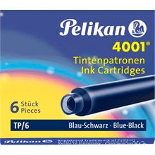 Pelikan Cartouches d'encre 4001 TP/6, bleu-noir cartouches d'encre standards pour tous stylos plume à cartouches courants, dans une boîte pliante contient: 6 cartouches -301184