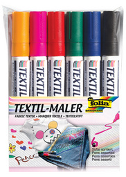 Kit marqueurs textiles folia marqueur pour textiles, set de 12, couleurs assorties assorti dans les couleurs: jaune, rose, rouge, bleu foncé, noir, vert foncé, pour dessiner sur les textiles, lavable jusqu'à 60 degrés, imperméable, base d'eau, résistant