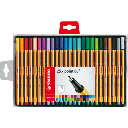 STABILO Feutre à pointe fine point 88, étui plastique de 25 largeur du tracé: 0,4 mm, pointe gainée de métal, capuchon ventilé, bonne résistance au séchage contenu: 25 pièces (8825-1)