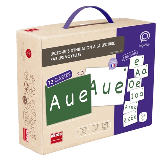 Cartes d’initiation à une lecture facile par les voyelles grâce à un système d’entraînement ludique : les «Lecto-bits ». Permet de développer l’habileté à la lecture sans la nécessité de connaître toutes les lettres de l’alphabet (seulement les voyelles).
